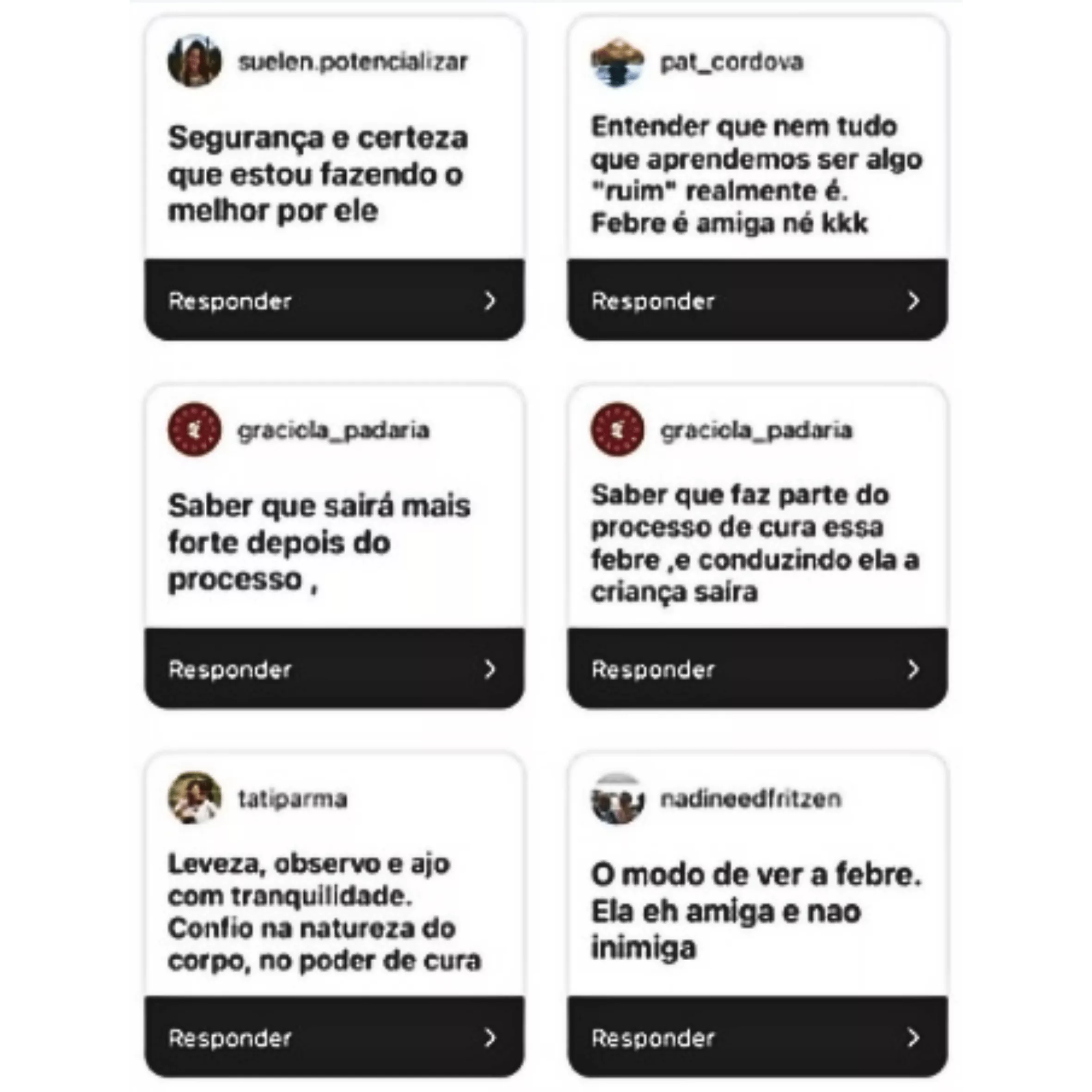 Todas as crianças em algum momento vão ter algum processo de doença e de febre. E poder seguir tratando isso praticamente sem usar nenhum medicamento tem sido maravilhoso. A resposta dele é dema Recentemente ele esteve gripado e em dois dias estava ótimo, e eu não precisei dar medicação nenhuma.